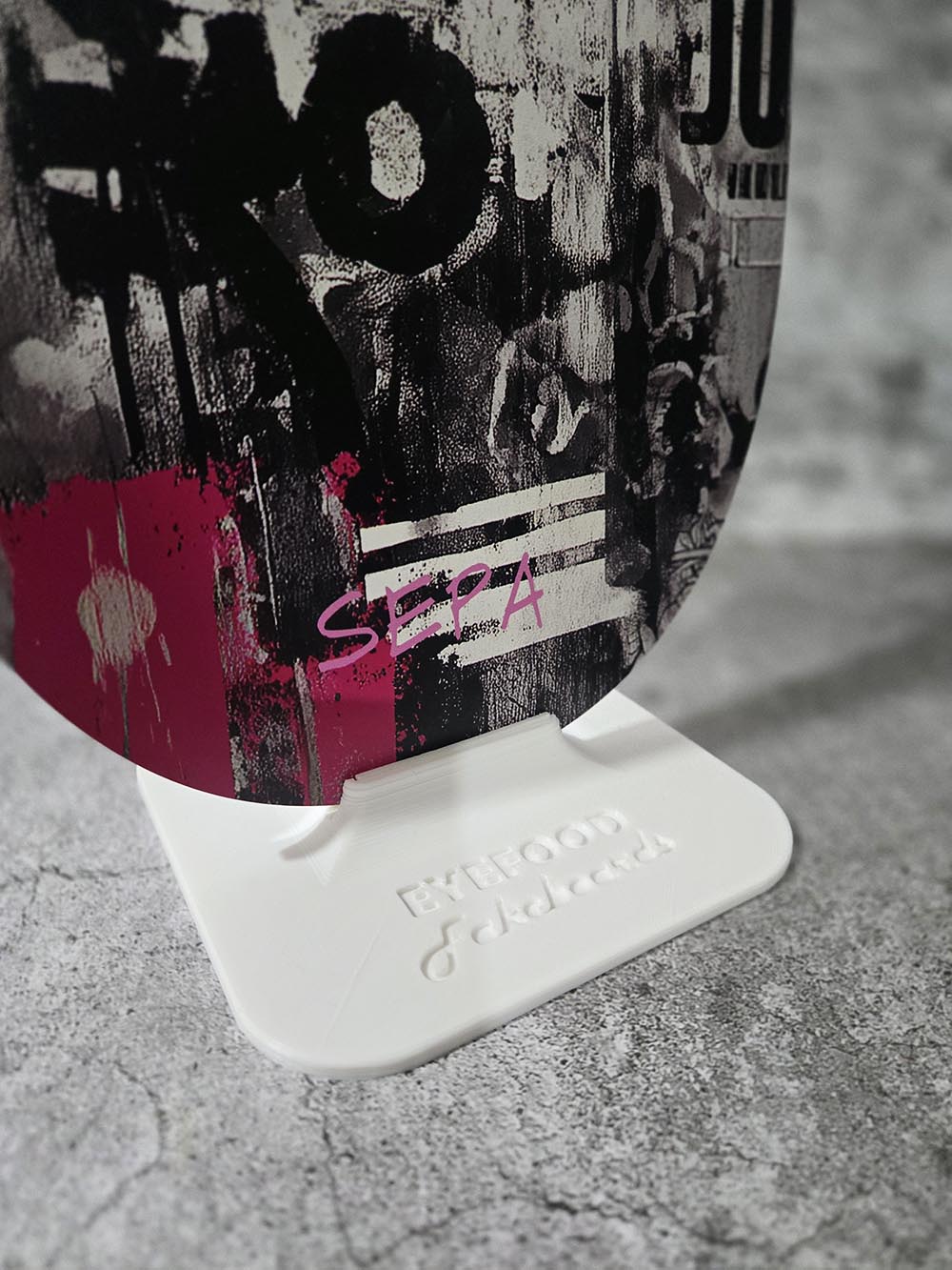 Instead of mounting your Fakeboard on the wall, the Fakestand lets the artwork stand freely, transforming it into a bold collectible display.